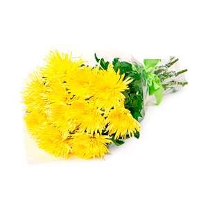 Golden Stars. These flowers bear the right name, since the word chrysanthemum can be translated as golden flower. The yellow fluffy heads are filled with midday sun. The decorations are minimal, as the key thing here is the mood of optimism and goodwill.