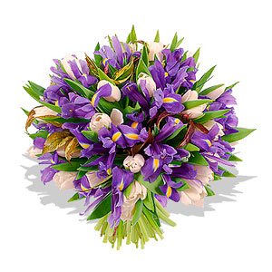 Featuring both majestic 35 Irises and gorgeous creamy white tulips, this enchanting combination cannot fail to impress. This stunning arrangement is both bold and beautiful making it perfect for both male and female recipients. Please note that the iris are sent out in tight bud; once in the warmth and in plenty of water, they will rapidly open to their full beauty.