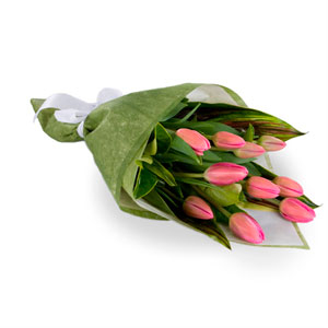 15 Tulips and foliage presented in a bouquet.Tulip products are not guaranteed in regional areas or areas that experience extreme weather conditions. In these instances the tulips will be substituted with a flower of equal or greater value.