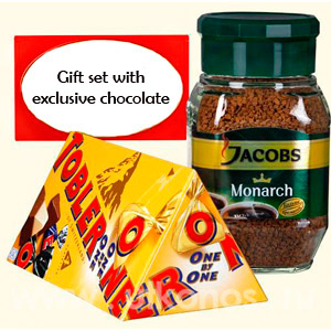 Gift set cofee Jacobs Monarch 100g + assorted chocolate Toblerone 200g.