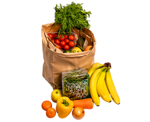 - Avocado 1pc - Bananas 1kg - White potatoes 1kg - Lemon 1pc - Bulb onion 500g - Mandarins 1kg
