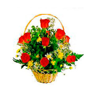 Giving this rose basket to your beloved is the best way to say: You are the most young and beautiful woman in the whole world. (11 Red roses + 5 Yellow Chrysanthemus + Greens) You can add your personalized card message to the bouquet arranged by our local Florist at the checkout page.