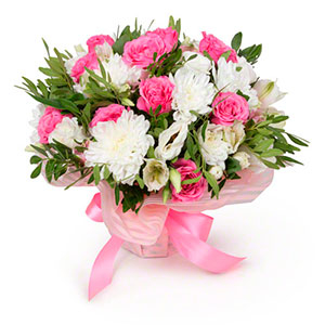 Roses (Pink) 4 Spray Chrysanthemum (White) 2