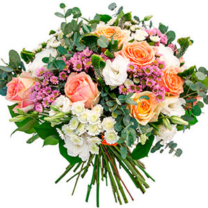 Pleasant bouquet will bring a great mood for the whole day! Composition: 7 roses, 6 branches of white and pink camomile chrysanthemums, 6 branches of white eustomas, greenery, decoration.
