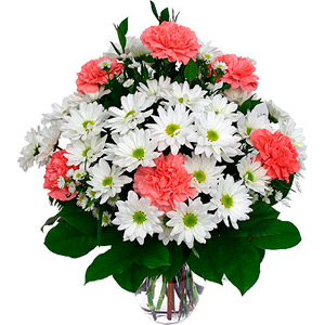 Affordable and long lasting combination of 6 pink carnations & 7 White daisies. A bright, cheerful gift suitable for many occasions or sentiments.You can add your personalized card message to the bouquet arranged by our local Florist at the checkout page.
