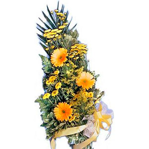 Wrapped bouquet of 3 yellow gerberas, 4 yellow daisies & yellow filler flowers.You can add your personalized card message to the bouquet arranged by our local Florist at the checkout page.
