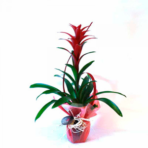 This guzmania is a plant that belongs to bromelias family. It has an easy growing and the lingering flower turn this plant into a showy and lasting gift.