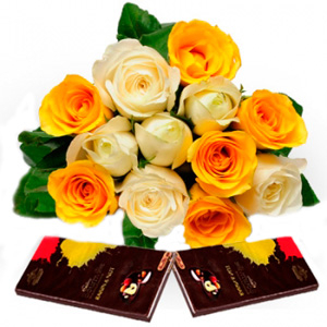 Roses are loved by all and that’s why they always add a personal touch to any event or occasion. This flower bouquet including 12 yellow and white roses with 2 chocolates makes a perfect gift for your loved one.